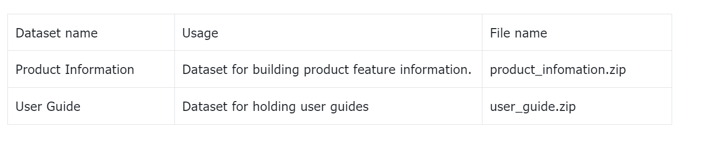 Create the "Product Information" and "User Guide" knowledge bases and upload the relevant dataset documents.